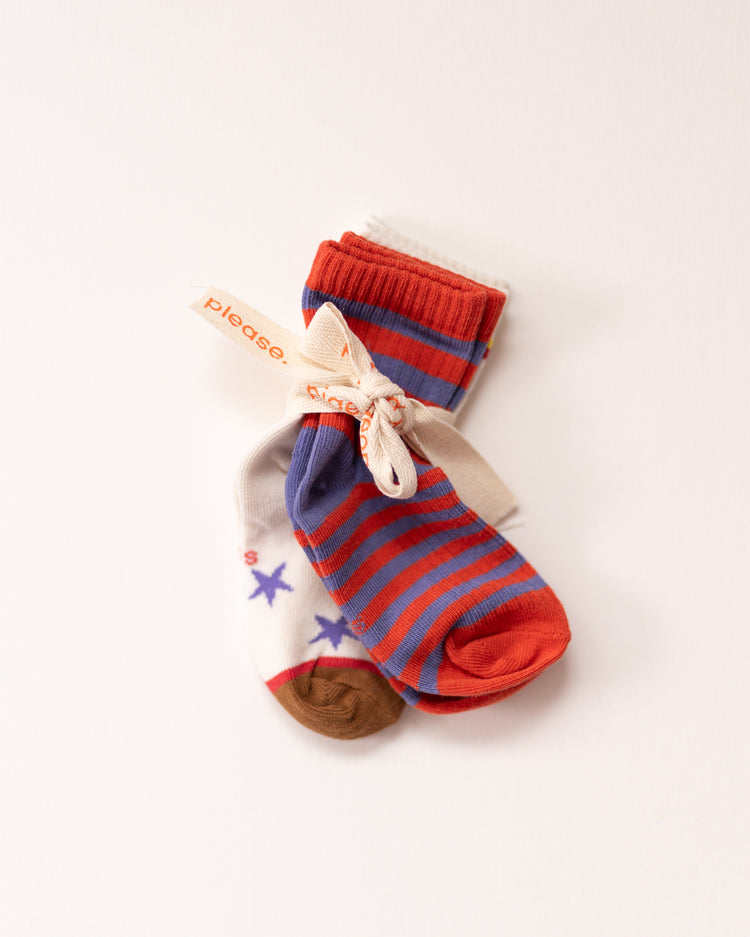 With candy-coloured stripes and lucky little stars, these socks are made for play dates, little adventures and adding a pop of fun into your day.