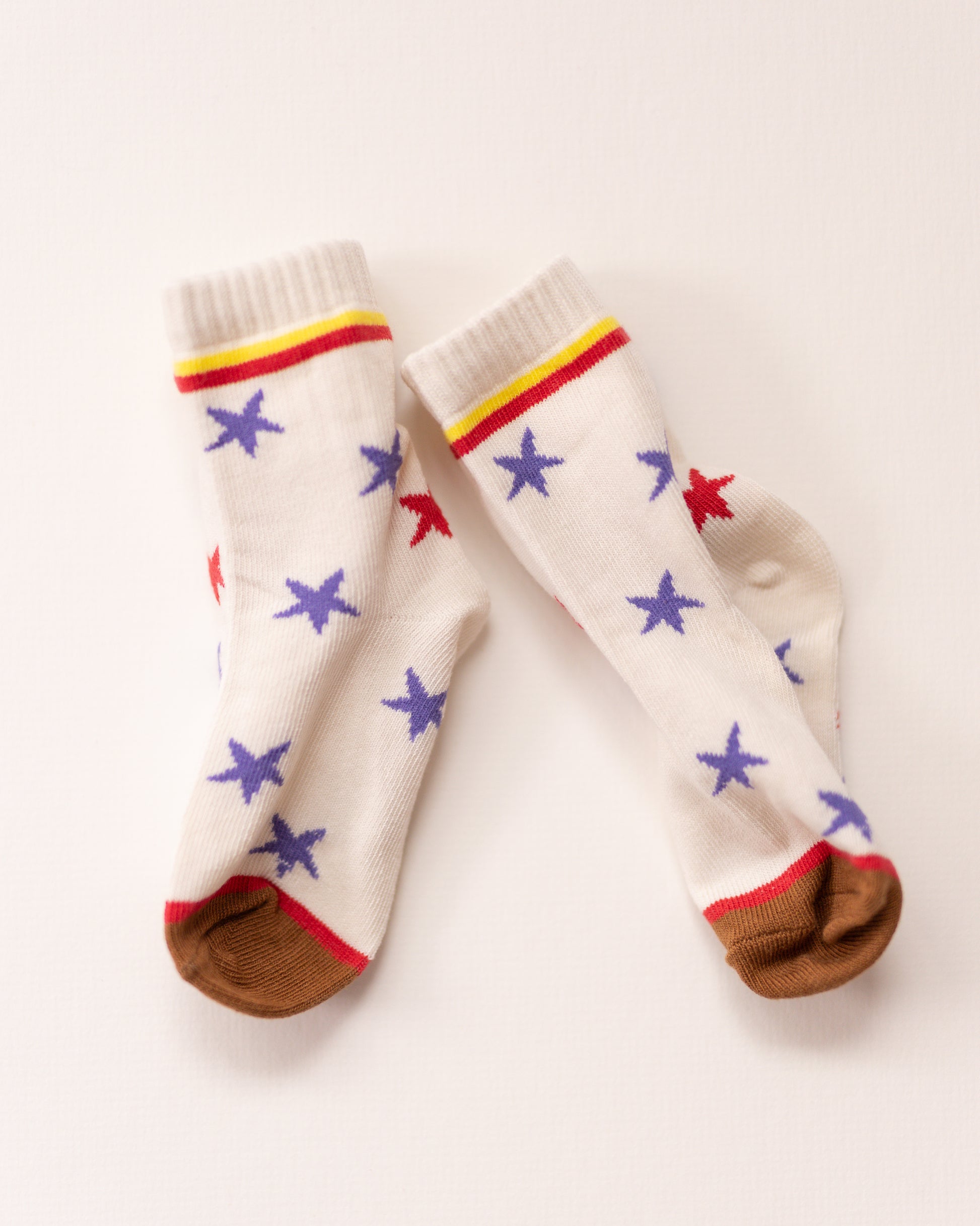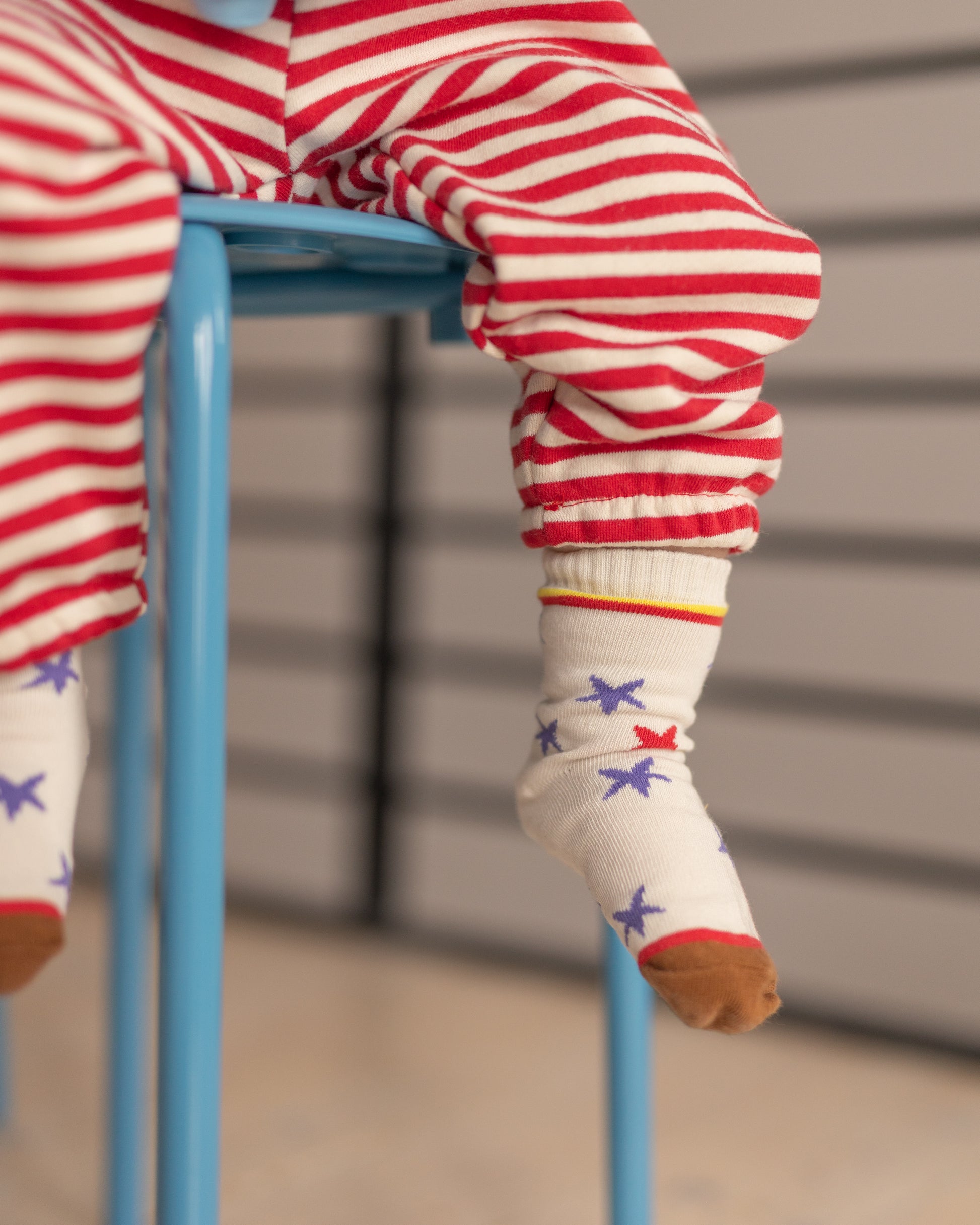With candy-coloured stripes and lucky little stars, these socks are made for play dates, little adventures and adding a pop of fun into your day.