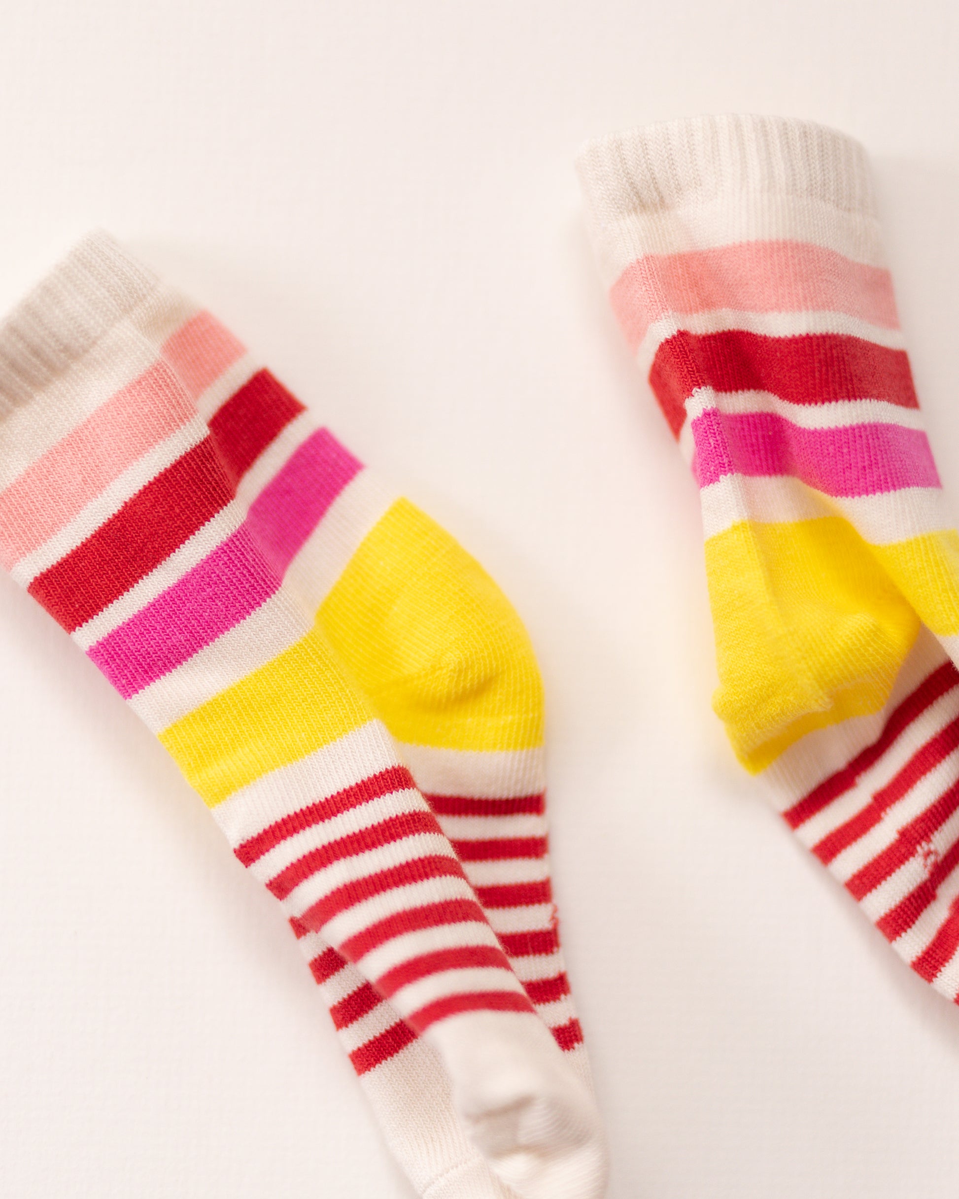 With candy-coloured stripes and lucky little stars, these socks are made for play dates, little adventures and adding a pop of fun into your day.