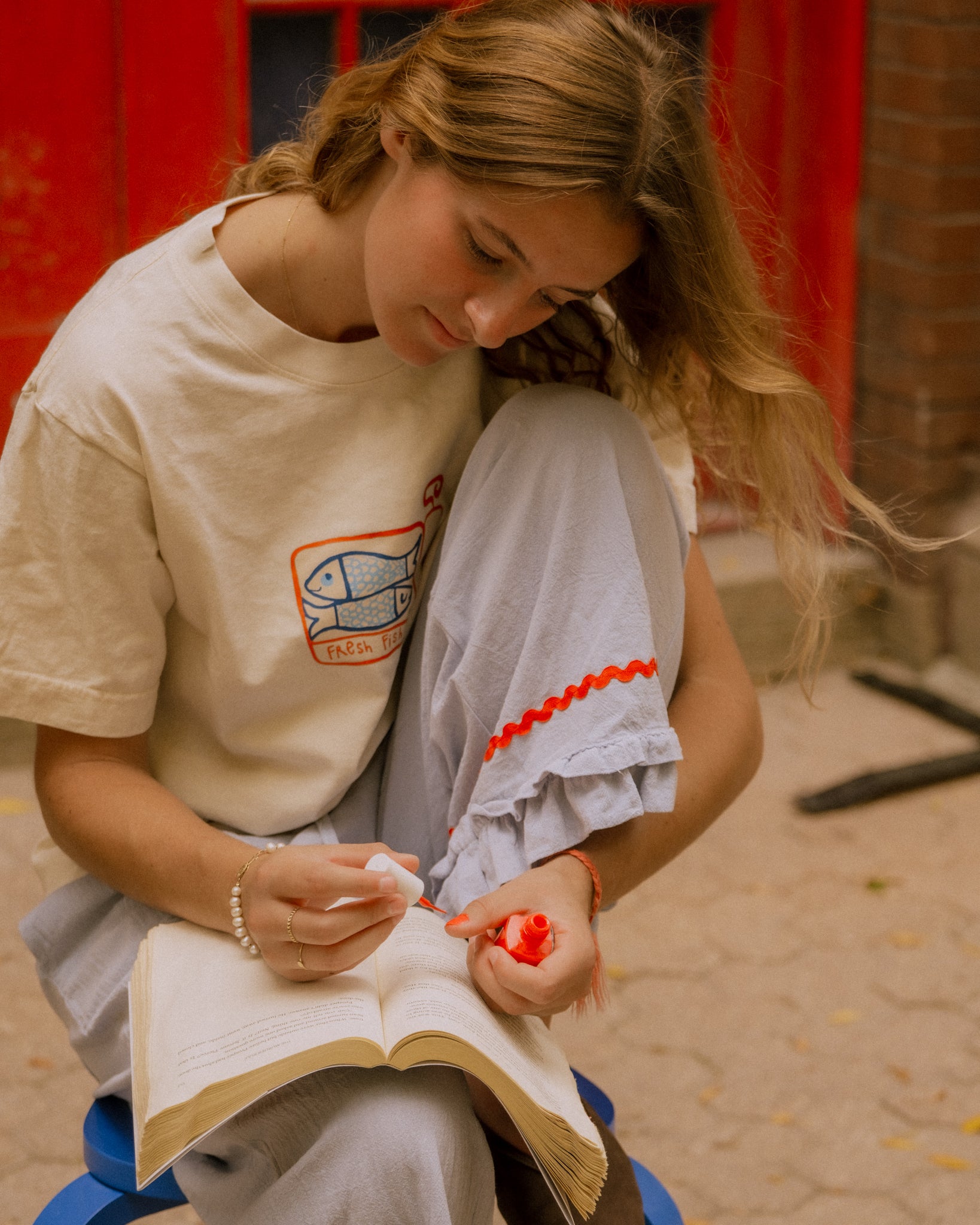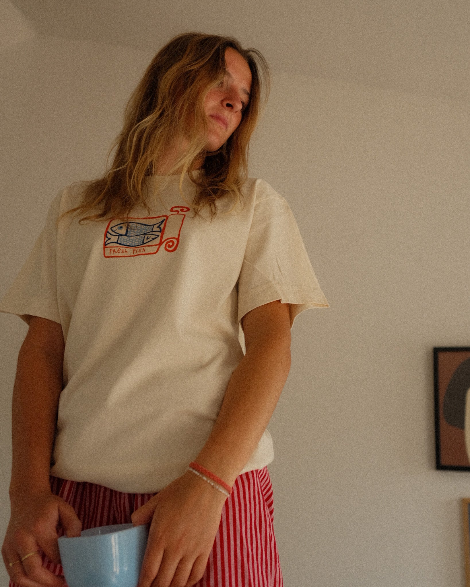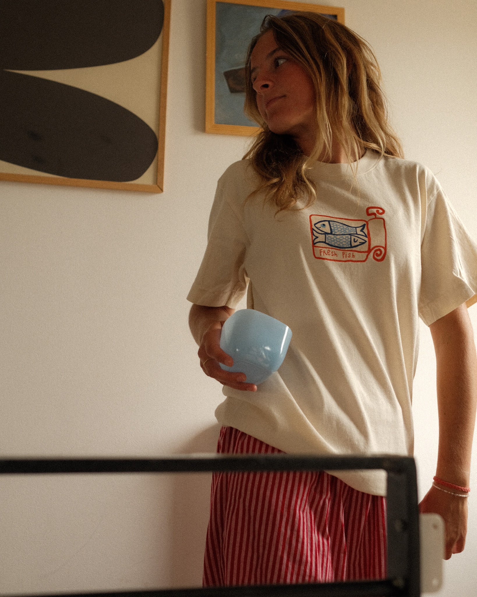 This t-shirt has a unisex, oversized fit. Made entirely from post-industrial cotton waste to conserve water and energy. Knit, sewn and dyed in Los Angeles.