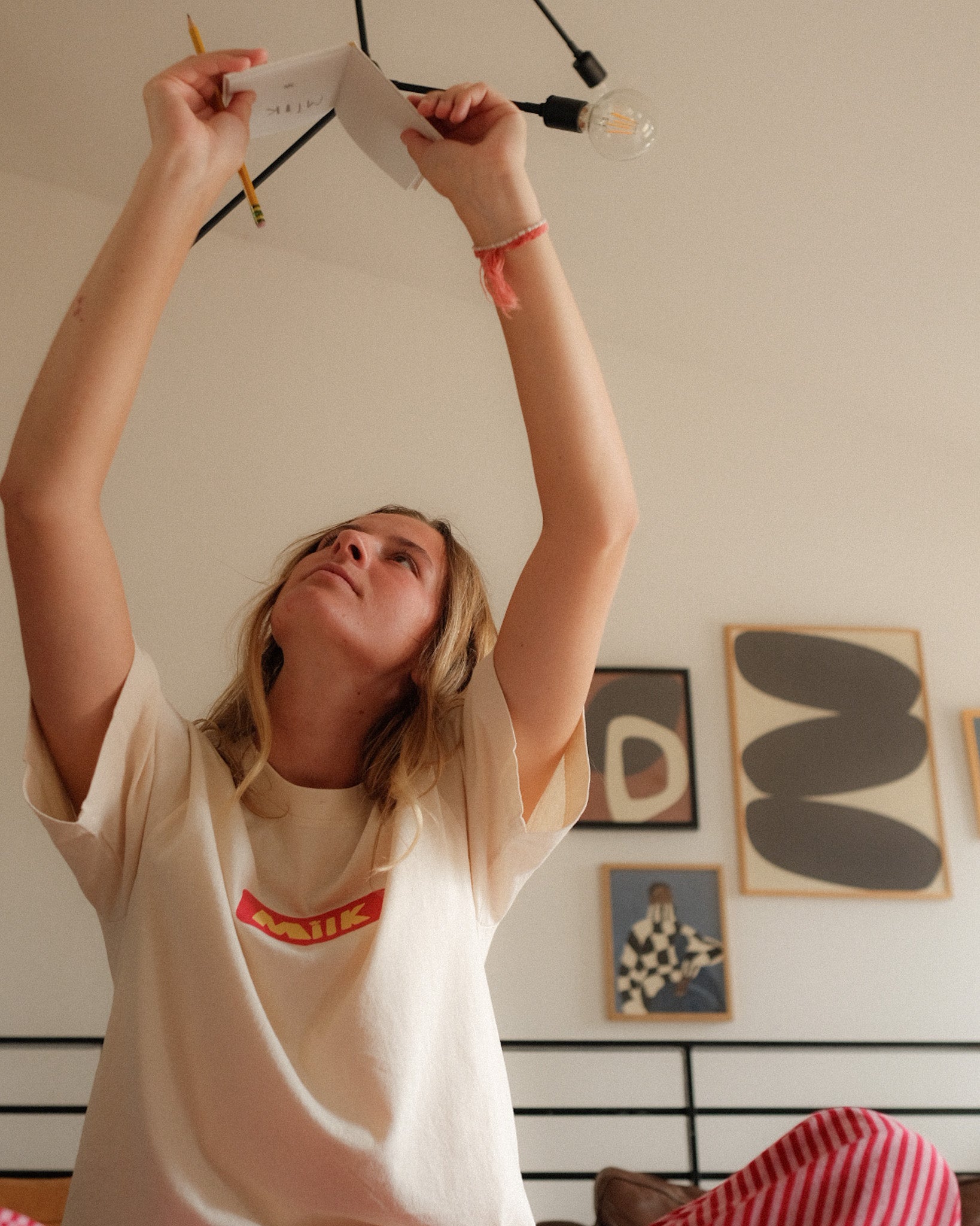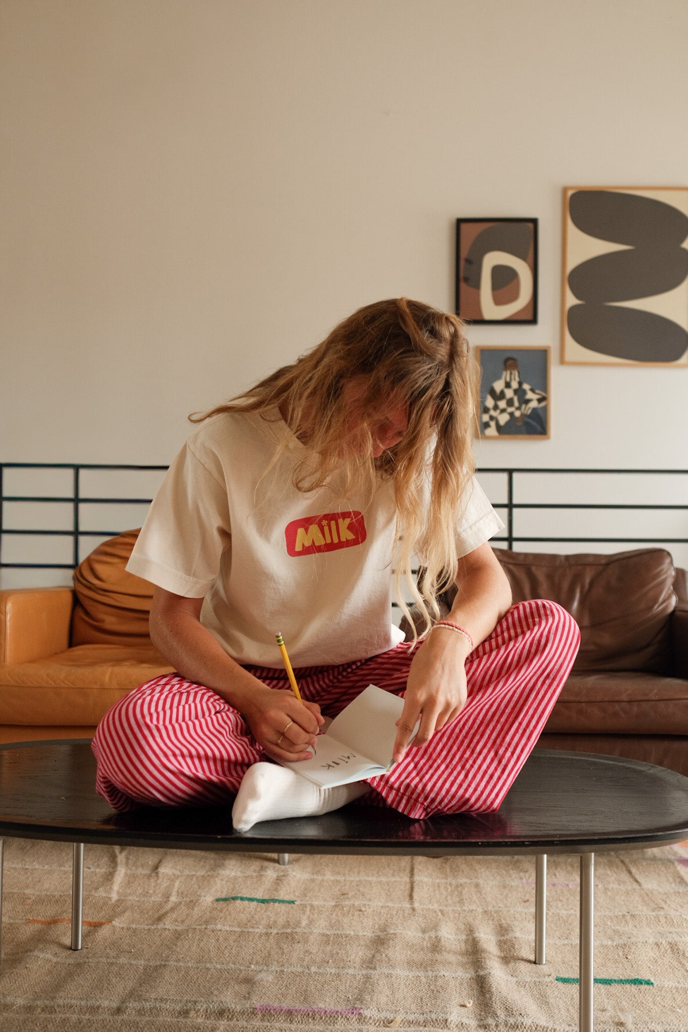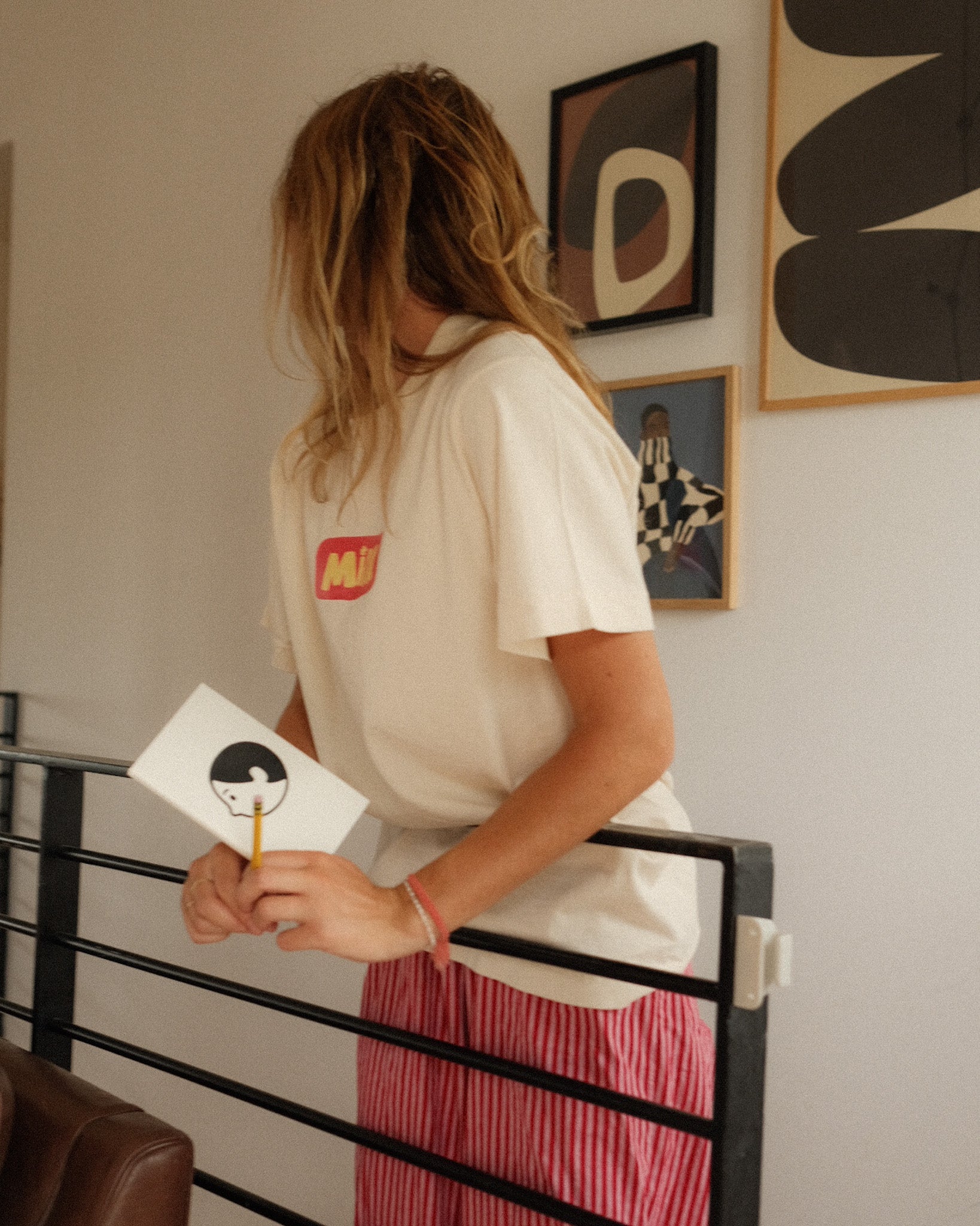 This t-shirt has a unisex, oversized fit. Made entirely from post-industrial cotton waste to conserve water and energy. Knit, sewn and dyed in Los Angeles.